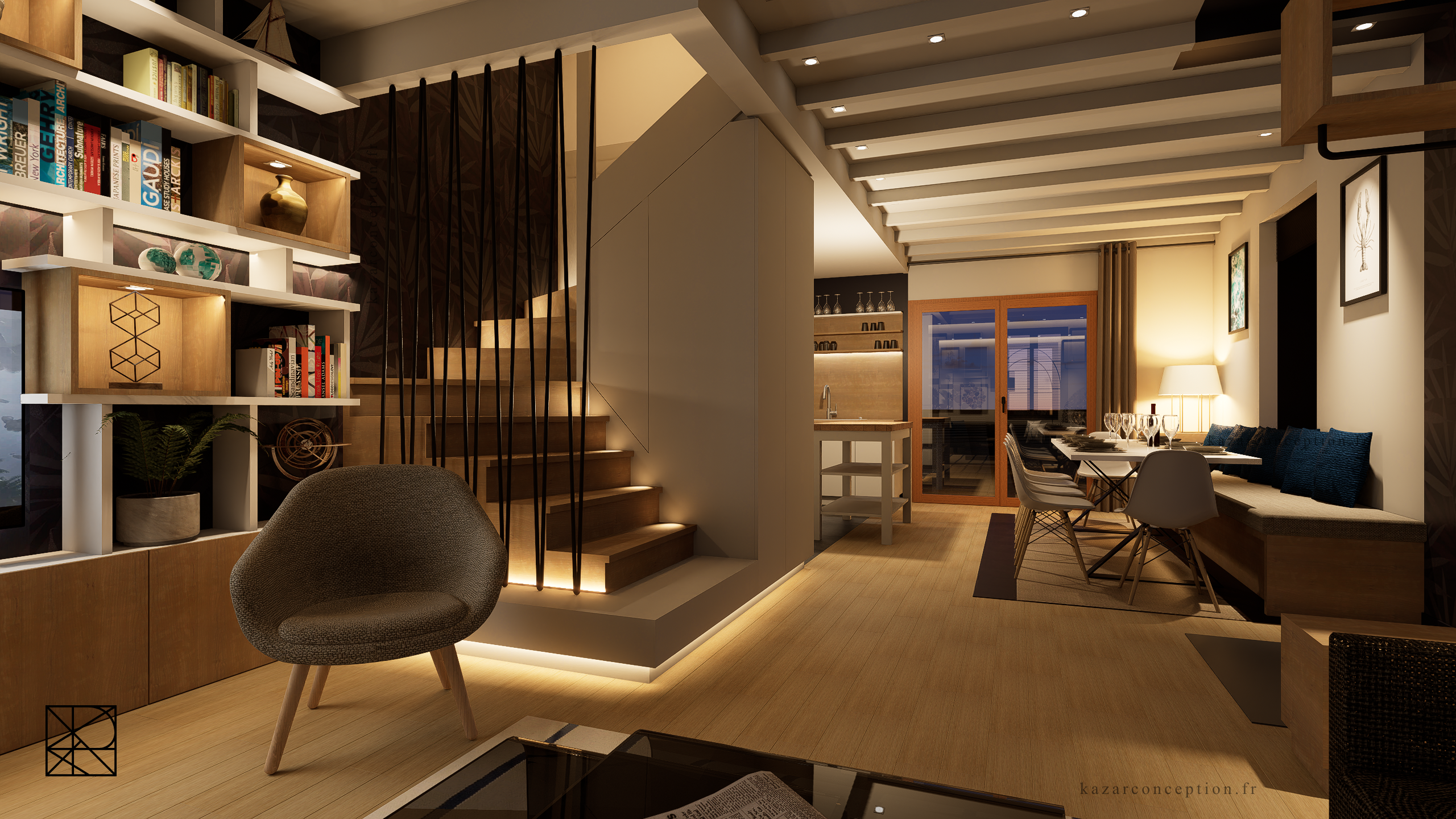 Agencement d’un espace Salon et d’un espace Cuisine-Salle à manger