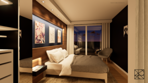 Agencement d’une tête de lit en panneaux bois et création d’une casquette d’éclairage